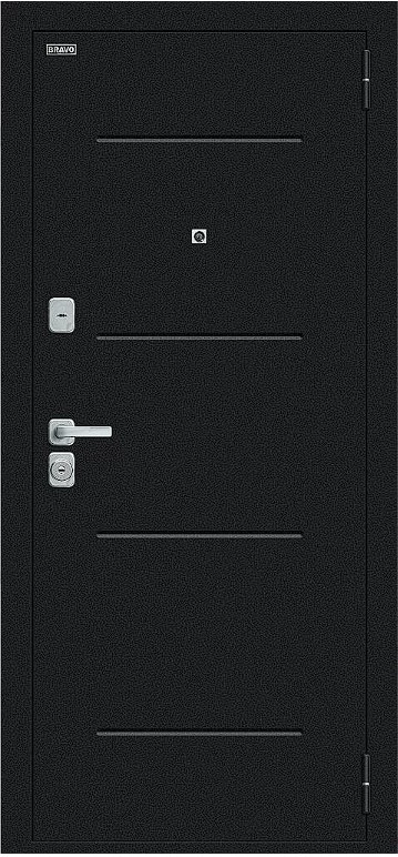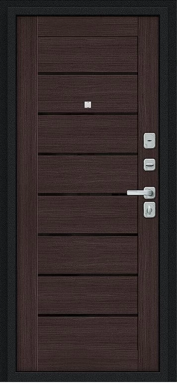 Надежная входная Дверь Браво Техно/BChrome Букле черное/Wenge Melinga премиум класса по цене 35 803 руб. Большая толщина стали защитит от проникновения в ваш дом, квартиру или коттедж. Используется очень качественная фурнитура: замки, цилиндры, ручки, защелки. Покрытие и отделка двери изготовлено под внимательным контролем производителя. Дверь имеет долгий срок службы и гарантию.
